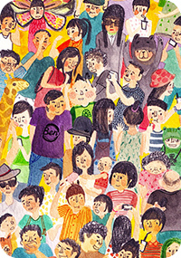 這是Jason Freeny本人,看照片就知道其實他自己也挺保有童年的XD。左右兩邊是他的手繪作品。