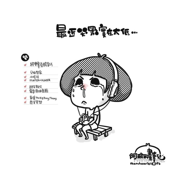 先是棒球經典賽(泛淚)、然後看了悲慘世界(哭)、聽了蘇打綠的小時候(泛淚)、黃美珍的只怕想家(泛淚)、HunterxHunter的主題曲(泛淚,我也不知道為什麼啊啊啊)...因此研判最近眼睛之所以會乾澀,就是因為太常莫名泛淚!還我濕潤的雙眼阿!!