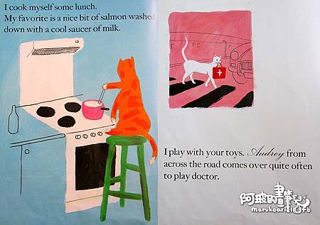 有養寵物的朋友應該都會很想知道當我們出門工作、上學時,牠們都在做些什麼?這本童書就可以為你解答,用說得難解答,大家可以google一下圖片:)而且尤其在聽完Bruce Ingman的演講之後,更是深深愛上他的作品~