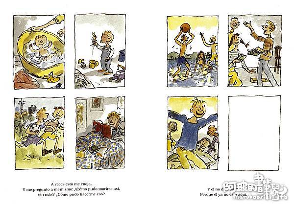 對於這本書有些不知道怎麼形容的吸引力,是一本書名很直白的童書,敘述作者非常個人的層面,簡單的文字敘述加上Quentin Blake的插畫詮釋,有觸動到一些連自己都不是很明白的情緒。