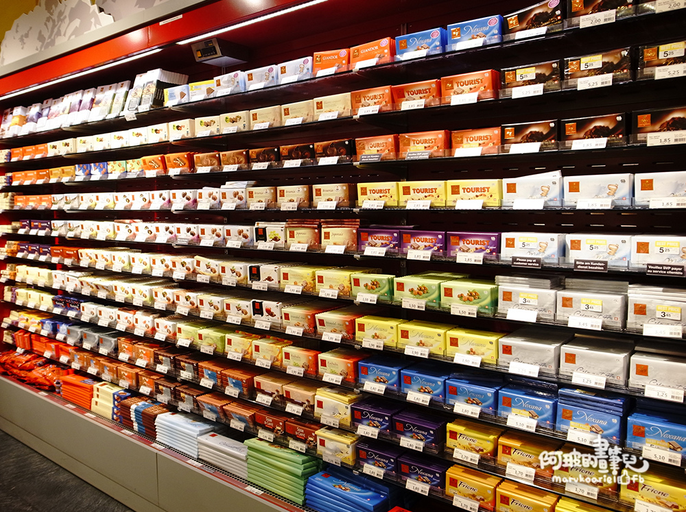 瑞士巧克力也是琳琅滿目~原本已經挑好口味,結果在結帳時遇到非常沒有意願幫大家結帳的店員,