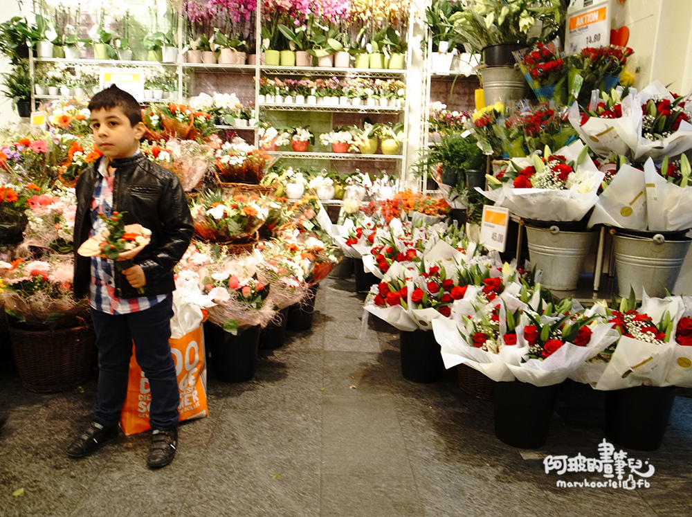 抵達瑞士這天,剛好是母親節,路過花店時,這個小男孩就拿著一束花,不知道在等誰~好可愛XD