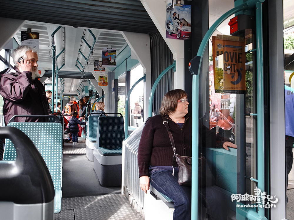 列車上很寬敞,也挺安靜的。輕軌是我們很喜歡的閒逛交通工具,可以輕鬆的看風景,加上通常我們都買單日票,可以想搭時候就上車,想逛的時候就下車。非常自由~