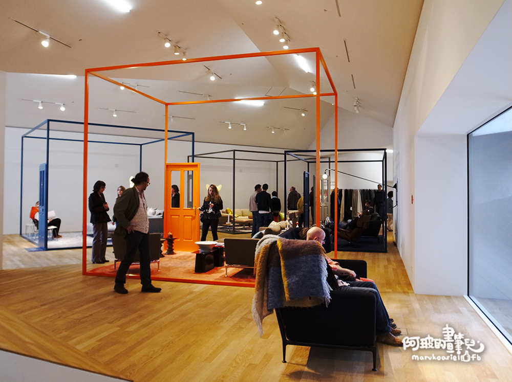 這棟建築外觀看似積木堆疊,實際上是由12個房屋重疊而成,打造成五層樓的展廳。主要呈現以「家」為主的設計理念,館內的所有陳列的展品都可以自由使用和體驗,讓人真的感覺就像在家一般~我們在裡面也玩了滿久的。哈哈哈!而當然他們所有展品也都是可直接現場下單購買。另外還設有Cafe與Gift Shop~還有免費的wifi可以使用:)